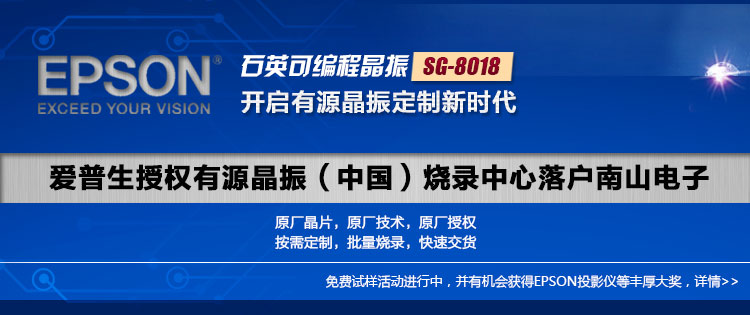 为了让中国的研发设计工程师以及大专院校电子专业师生,对爱普生SG-8018系列石英可编程晶振的优越性能有更直观可信的应用体验,爱普生(EPSON)联合J9.COM官方网站电子(NSCN),即日起正式启动新型石英可编程晶振SG-8018免费送样活动。