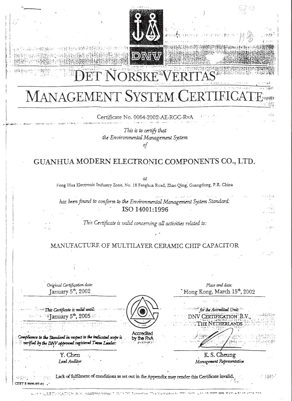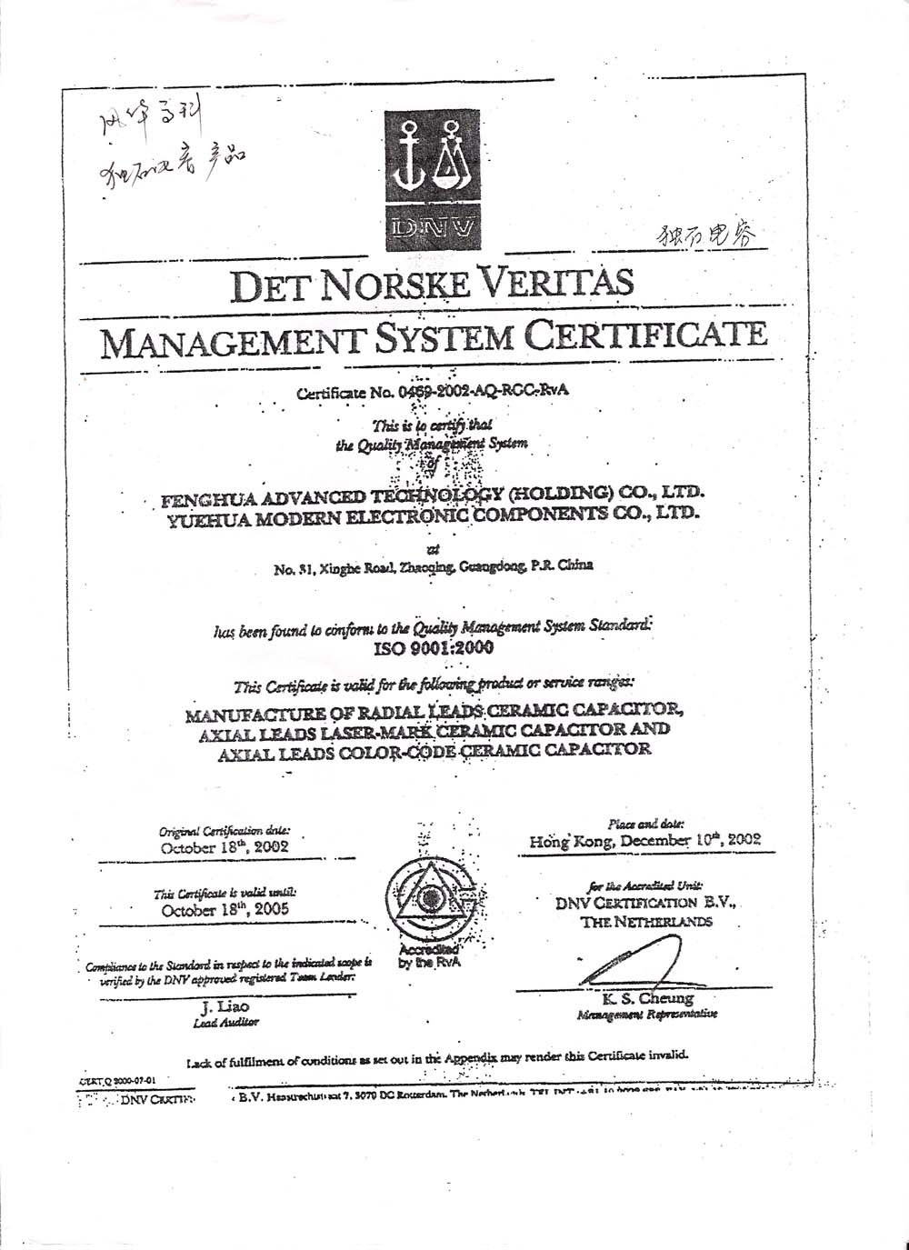 | 风华高科是全球贴片被动元器件排名八强的知名企业 ,早在2000之前年就实现了贴片电容,贴片电阻,贴片电感,贴片二极管,贴片三极管,贴片磁珠,贴片磁珠排,贴片功率电感,贴片钽电容,贴片晶振,贴片电解电容等系列产品的无铅化和标准化,通过了ISO9000和ISO1400认证。
